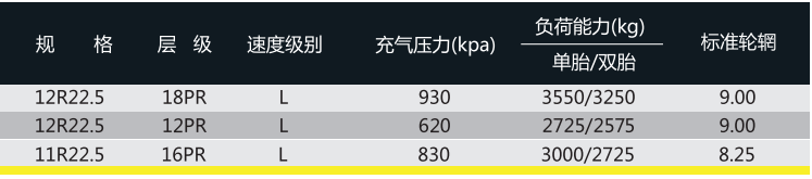 适用环境 ●挂车 ●拖轮轮位 ●载重等级L ●一级公路 ●长途运输 产品特点 1、优化的三线曲折花纹设计,使轮胎拥有足够的制动力的同时兼顾节油性。 2、连续的花纹构造,使导向性、防侧滑和防偏磨性更强。 3、优化的胎面胶配方,赋予轮胎极佳的耐磨性能。