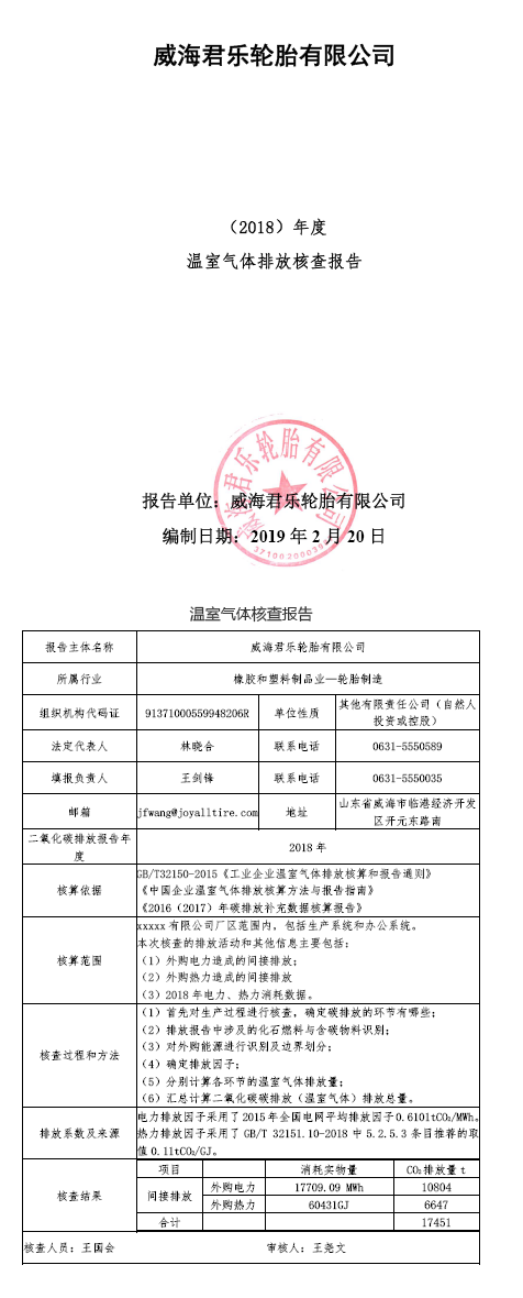 温室气体核查报告(君乐轮胎)