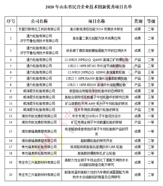 6月12日,山东省民营企业优秀创新成果认定名单对外公布,君乐轮胎的成果列入其中。